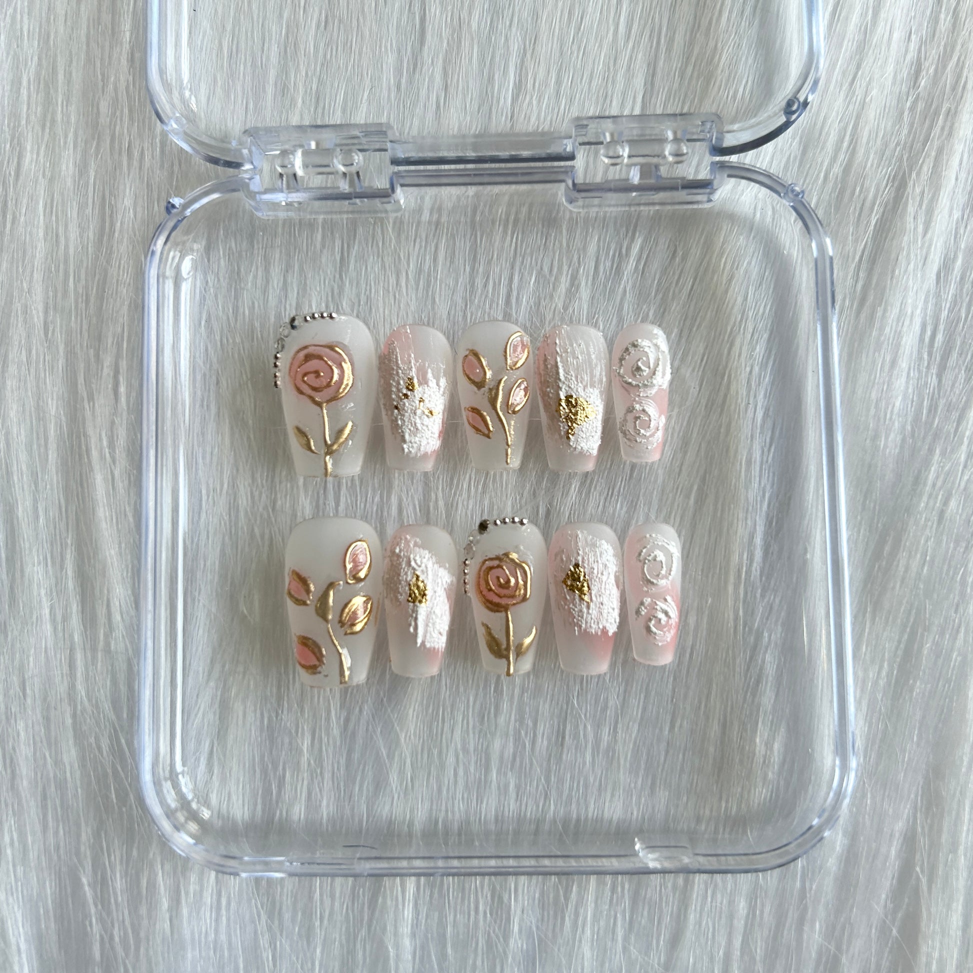 Our 100% handcrafted press-on nails are designed for the modern woman who values time, beauty, and sustainability. No more hours at the salon or harsh chemicals—just reusable, salon-quality nails that blend artistry with convenience.