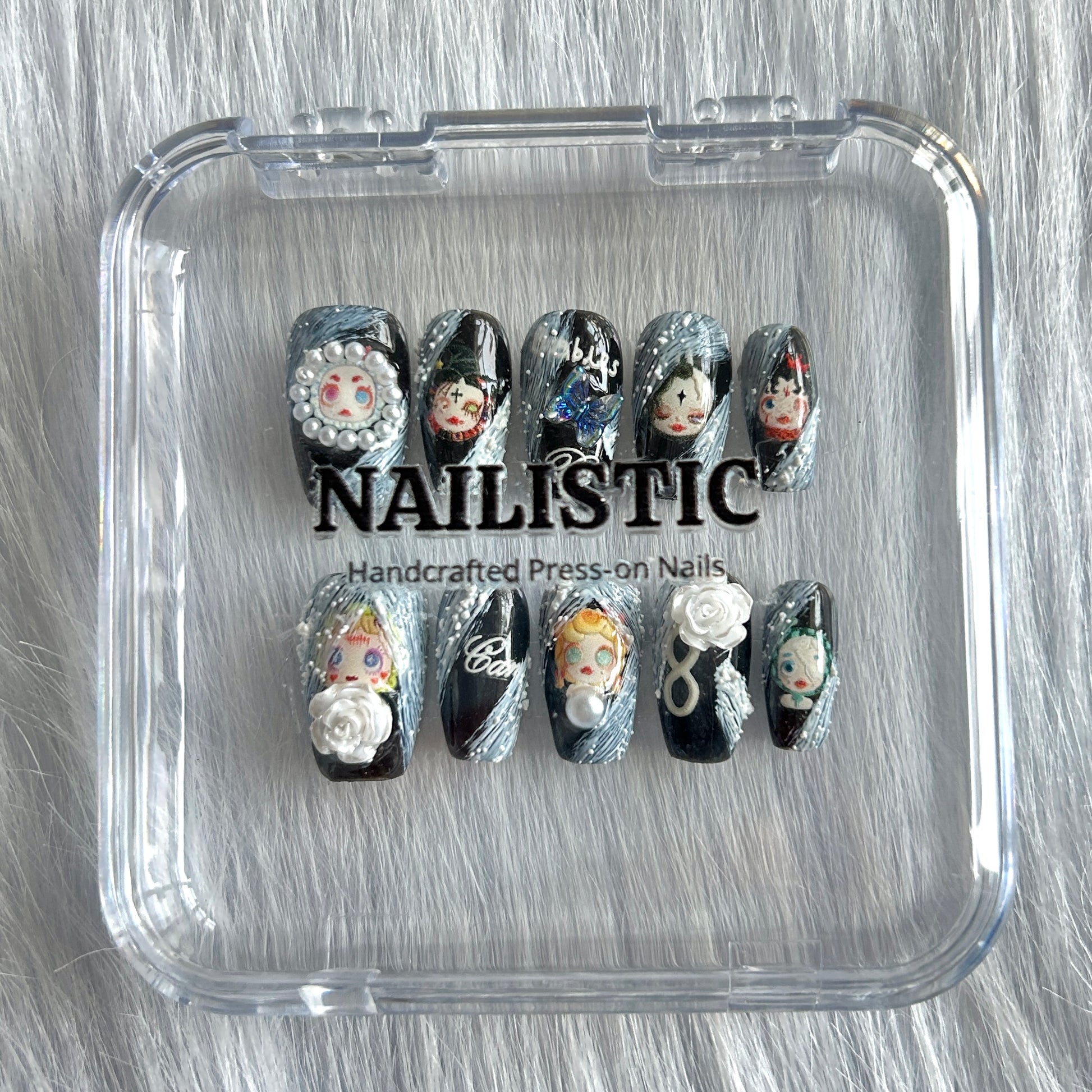 Never be without your furry friend! Our artists hand-paint your beloved cat, dog, or any animal onto high-quality, glossy press-on nails. Perfect for pet parents who want to flaunt their love in a uniquely stylish way.