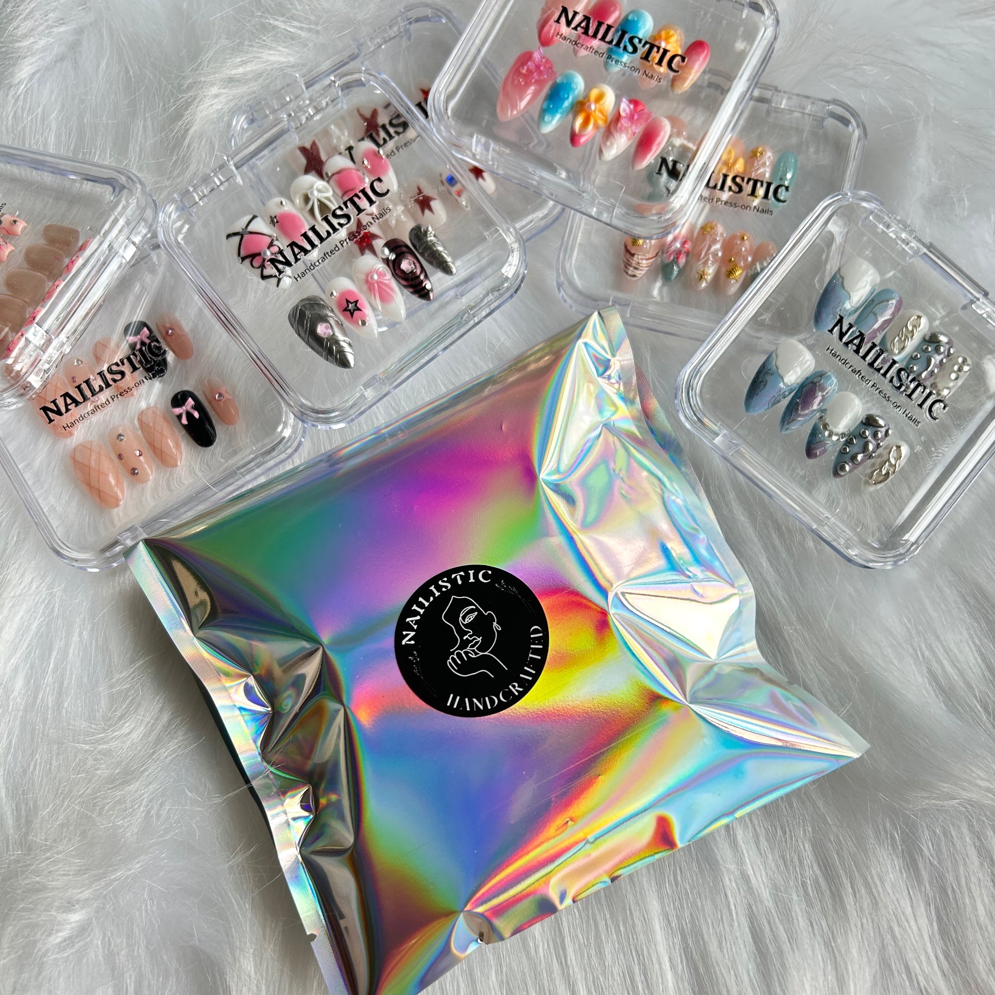 Dive into the excitement of our Mystery Nail Box, where every unboxing is a unique adventure! Each box is carefully curated with a random selection of our most glamorous press-on nail designs, ensuring a fresh surprise every single time.